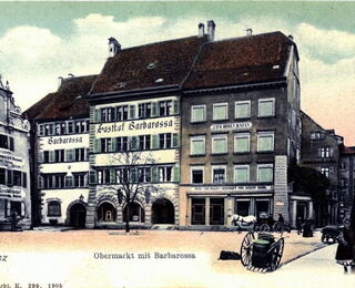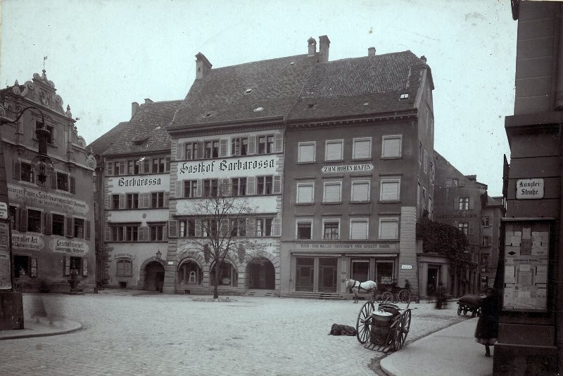 Das heutige Hotel Barbarossa besteht eigentlich aus drei Bürgerhäusern, obwohl es heute als ein einheitliches Gebäude erscheint. Die Bürgerhäuser "Zum Kremli" (Kamel) und die westlich anschließenden Häuser "Zum Egli" (früher Visch) und "Zum grünen Gatter" bilden das heutige Hotel Barbarossa. Die älteste Nachricht, aus dem Jahr 1388, ist eine Urkunde des Konstanzer Domkapitels in der das Haupthaus "Zum Kremli" als neues Haus bezeichnet wird.