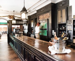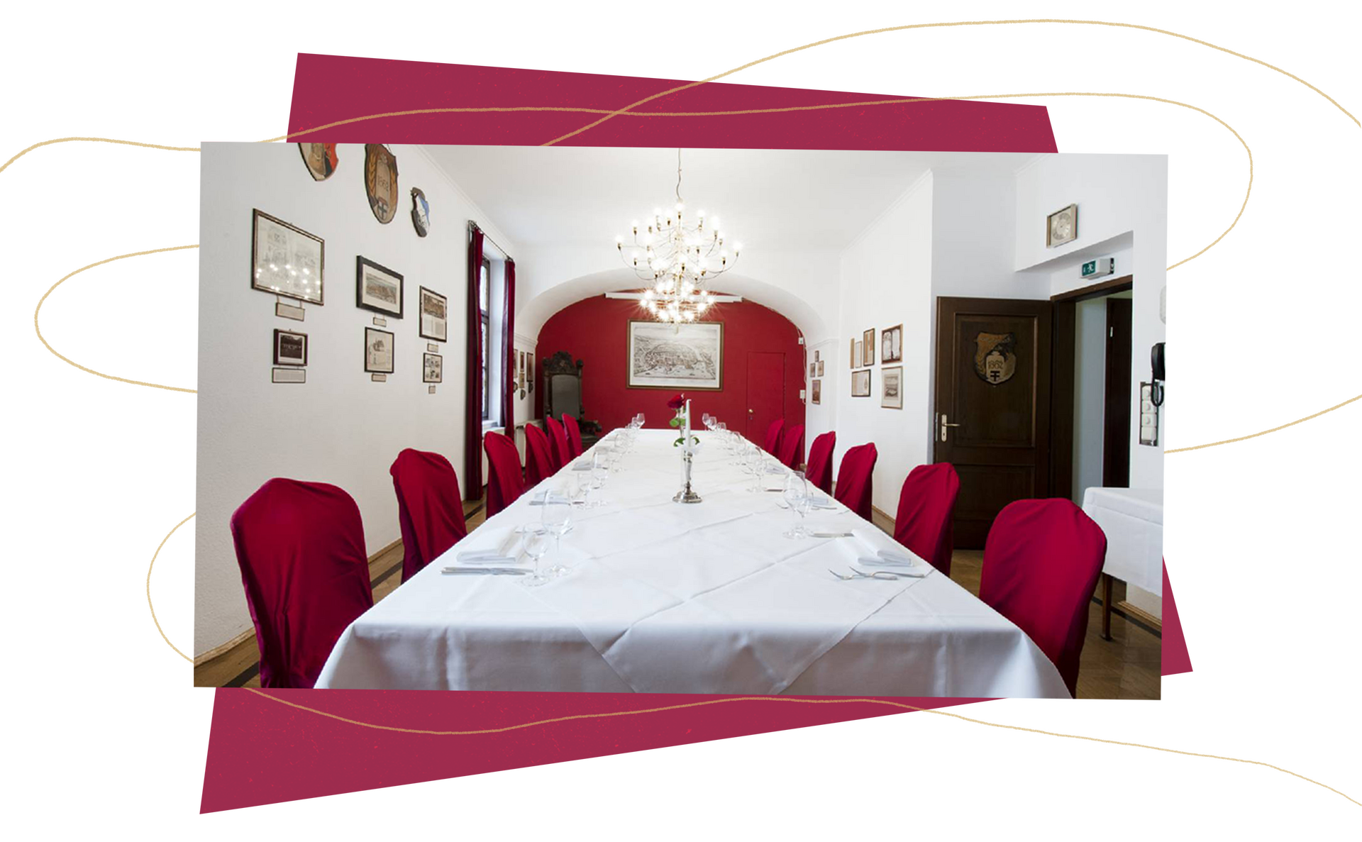 Im ersten Stock befindet sich unser Restaurant "Weinstube". In der guten Stube unseres Hauses genießen Sie in historischem Ambiente. Seit Karl Miehle den Raum um 1903 herum umgestaltete, hat sich im wesentlichen nichts geändert. Wir freuen uns Sie bei uns begrüßen zu dürfen.