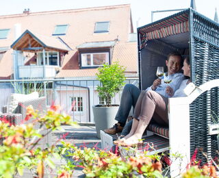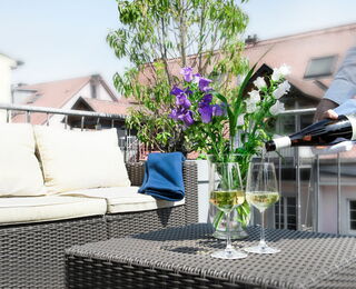 Exklusiv für unsere Hotelgäste haben wir unsere schönen Altstadtterrassen auf der 3. und 4. Etage geöffnet. Genießen im Sommer das Flair der Konstanzer mittelalterlichen Altstadt oder lauschen Sie dem entspannten Plätschern der Wasserwand.