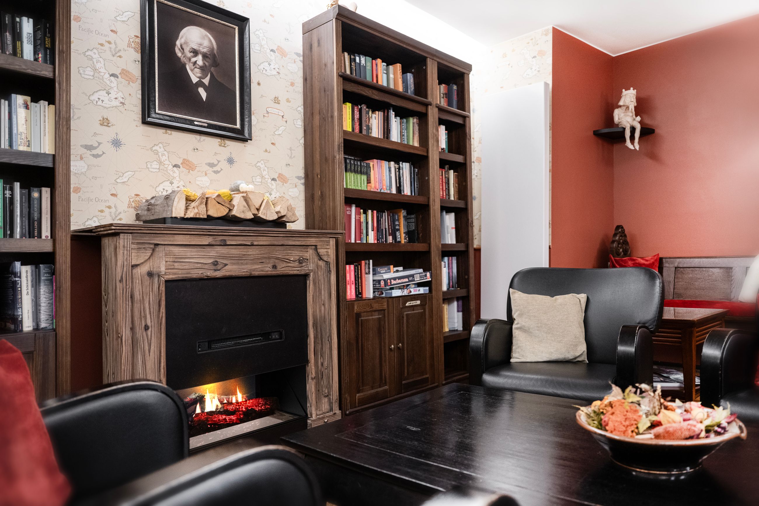 Genießen Sie hier zum Knistern unseres (zugegebener Maße unechten) Kamin ein gutes, spannendes oder fesselndes Buch aus unserem "offenen Büchregal". Das Prinzip ist ganz einfach. Jeder darf sich ein Buch gratis herausnehmen und darin schmöckern. Im Tausch stellt man ein bereits gelesenes Buch zurück und macht damit dem nächsten Gast eine Freude. Auf diese Weise finden Sie bei uns eine Vielzahl an Büchern aus den unterschiedlichsten Themengebieten, sowie auch einige englische bzw. anderssprachige Bücher.